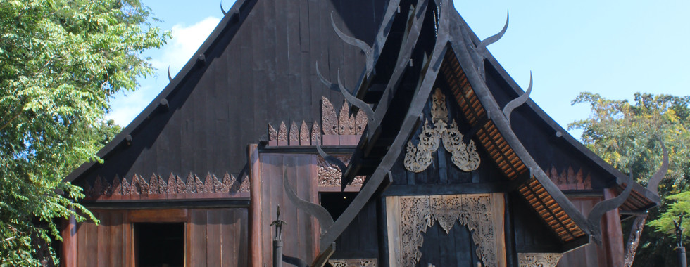 The next morning brought with it a cautious outing. We started at the Choui Fong tea plantation, then onto this place called the Black House. This place I think was the home of a national revered Thai artist. But it had all these little Thai style houses with carvings, paintings, chairs, tables, swords, boats. Really impressive.
